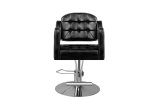Stylowy fotel fryzjerski marki HAIR SYSTEM. Elagancki i bardzo wygodny. Solidna, chromowana podstawa gwarantuje utrzymanie stabilności siedziska. Obicie wykonane z wysokiej jakości czarnej ekoskóry. Fotel posiada regulację góra-dół.