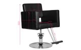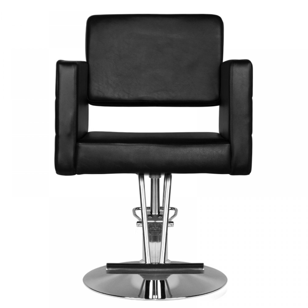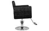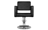 Nowoczesny fotel fryzjerski marki HAIR SYSTEM. Elagancki i bardzo wygodny. Solidna, chromowana podstawa gwarantuje utrzymanie stabilności siedziska. Obicie wykonane z wysokiej jakości czarnej ekoskóry. Fotel posiada równiez regulację góra-dół.