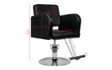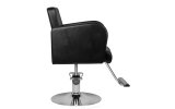 Nowoczesny fotel fryzjerski marki HAIR SYSTEM. Elagancki i bardzo wygodny. Solidna, chromowana podstawa gwarantuje utrzymanie stabilności siedziska. Obicie wykonane z wysokiej jakości czarnej ekoskóry. Fotel posiada regulację góra-dół.