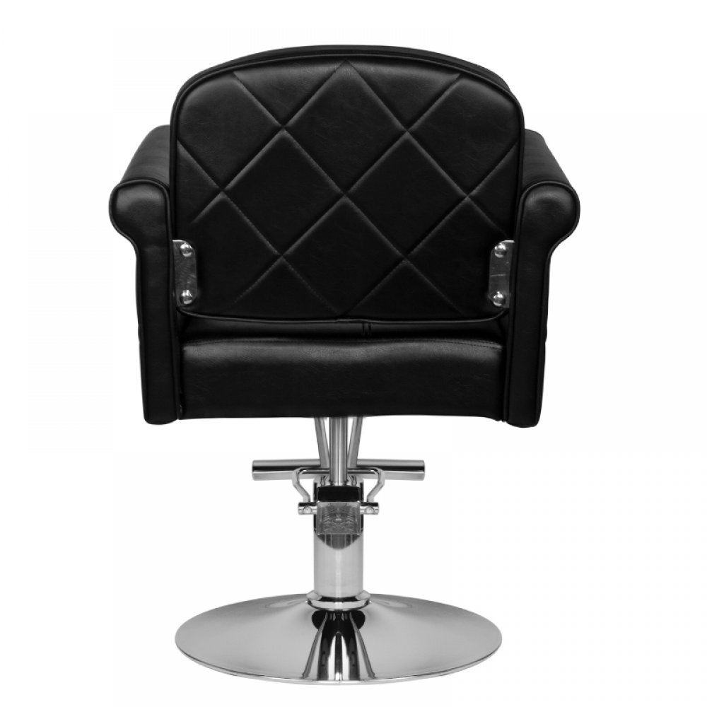 Nowoczesny fotel fryzjerski marki HAIR SYSTEM. Elagancki i bardzo wygodny. Solidna, chromowana podstawa gwarantuje utrzymanie stabilności siedziska. Obicie wykonane z wysokiej jakości czarnej ekoskóry. Fotel posiada regulację góra-dół.