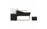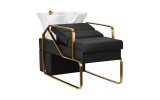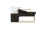 Nowoczesna myjnia fryzjerska marki Gabbiano to połączenie funkjonalności z włoska elegancją. Myjnia wykonana jest z najwyższej jakości materiałów i doskonale wykończona. Wiemy jak ważny jest komfort klienta podczas zabiegów, dlatego specjalna konstrukcja zapewnia klientowi solidne podparcie głowy w czasie mycia. Miękkie i niezwykle wygodne siedzisko pokryte jest wysokiej jakości ekoskórą w kolerze szarym. Myjnia posiada białą misę ceramiczną i podłokietniki w kolorze złotym. Idealny mebel do nowoczesnych wnętrz.