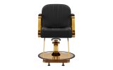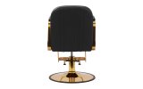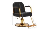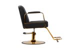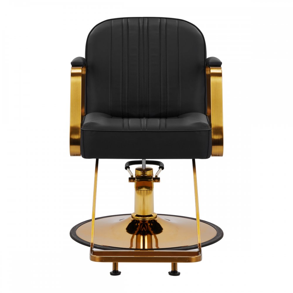 Mechanizm pełnego obrotu, w który jest wyposażony fotel, sprawia, że praca fryzjera staje się bardziej efektywna i wygodna. Solidna, okrągła podstawa gwarantuje stabilność w trakcie użytkowania. Polerowana, gładka powierzchnia nadaje elementowi elegancki wygląd i sprawia, że ten jest łatwy do utrzymania w czystości. Wygodne siedzisko z wypełnieniem z miękkiej pianki zapewnia wysoki komfort użytkowania, nawet podczas wielogodzinnych zabiegów. Częściowo tapicerowane, metalowe podłokietniki o ciekawym kształcie pozwalają na prawidłowe ułożenie barków klienta – sprawia to, że nie chowa głowy w ramionach ani się nie garbi – co wyraźnie ułatwia wykonywanie precyzyjnych zabiegów, w tym strzyżenia.