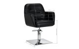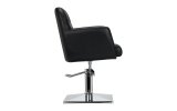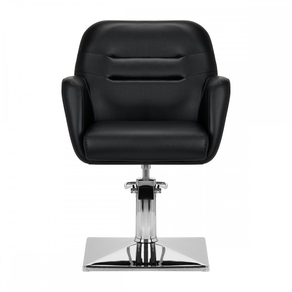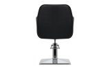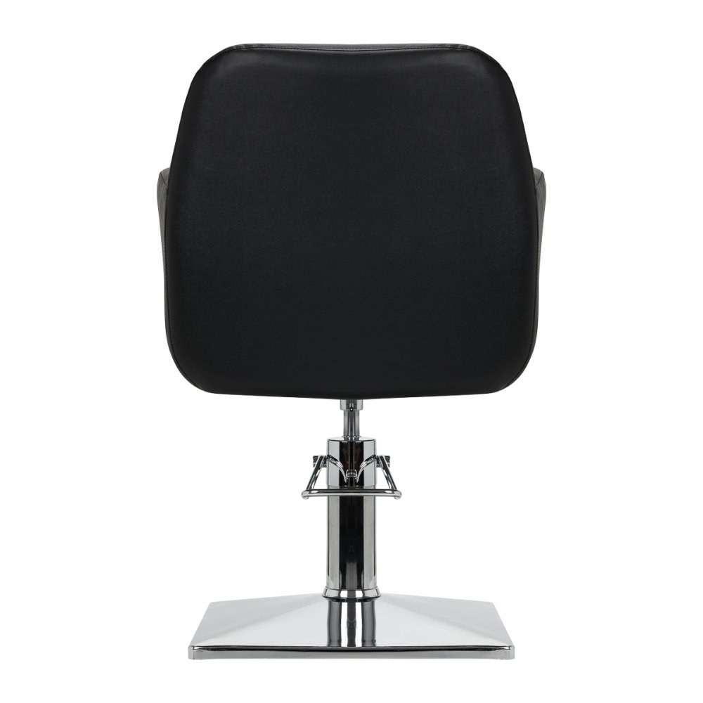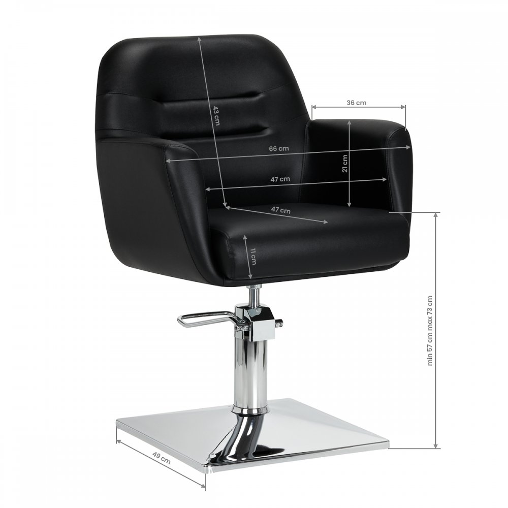 Solidna podstawa w kształcie prostokąta gwarantuje stabilność w trakcie użytkowania. Gładka powierzchnia o lustrzanym wykończeniu sprawia, że element ten jest łatwy do utrzymania w czystości. Siedzisko z wypełnieniem z pianki zapewnia wysoki komfort użytkowania oraz wygodę nawet podczas wielogodzinnych zabiegów. Mechanizm pełnego obrotu sprawia, że praca fryzjera staje się bardziej efektywna i wygodna. Podłokietniki umiejscowione na odpowiedniej wysokości pozwalają na prawidłowe ułożenie barków klienta – sprawia to, że nie chowa głowy w ramionach ani się nie garbi – wyraźnie ułatwiając precyzyjne wykonywanie zabiegów, w tym strzyżenia.