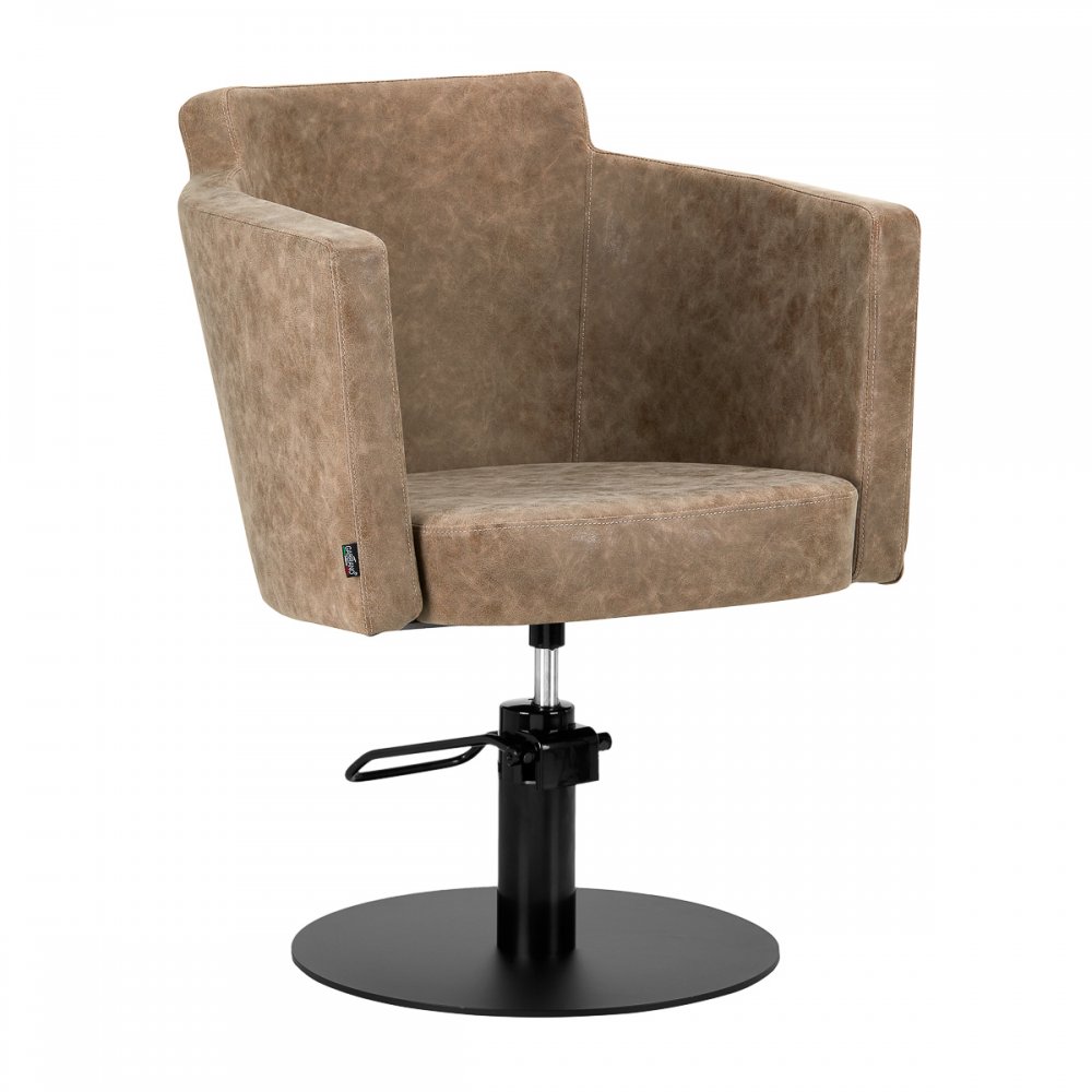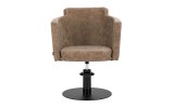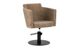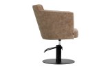 Solidna, płaska podstawa w kształcie koła gwarantuje stabilność w trakcie użytkowania. Matowo wykończona, gładka powierzchnia nadaje elementowi elegancki wygląd i sprawia, że ten jest łatwy do utrzymania w czystości. Wyposażenie fotela w mechanizm pełnego obrotu sprawia, że praca fryzjera staje się bardziej efektywna i wygodna. Wygodne siedzisko z wypełnieniem z pianki zapewnia wysoki komfort użytkowania, nawet podczas wielogodzinnych zabiegów. Podłokietniki pozwalają na prawidłowe ułożenie barków klienta – sprawia to, że nie chowa głowy w ramionach ani się nie garbi – wyraźnie ułatwiając wykonywanie precyzyjnych zabiegów, w tym strzyżenia.