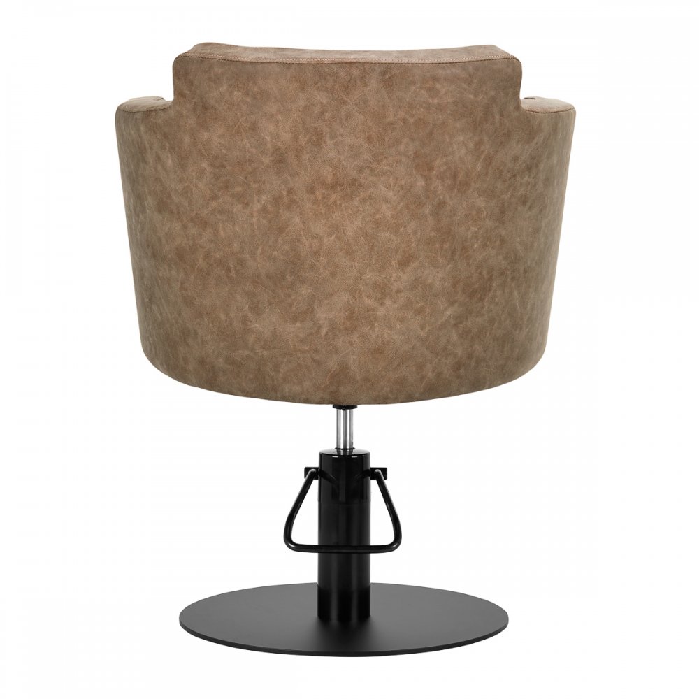 Regulacja wysokości odbywa się przy użyciu trwałego podnośnika hydraulicznego, który pozwala dostosować poziom siedziska w granicach 50-63 cm – nawet w momencie, gdy klient siedzi na fotelu. Gwarantuje to bardziej ergonomiczną pracę, zapewniając możliwość swobodnego dopasowania poziomu fotela do wzrostu zarówno klienta, jak i fryzjera. Odpowiednio wyprofilowane oparcie obite jest skórą syntetyczną i pozwala na zajęcie dogodnej pozycji. Zapewnia to doskonałe wsparcie dla pleców, co ma znaczenie zwłaszcza w przypadku zabiegów trwających wiele godzin.