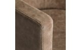 Funkcjonalny mebel wypełniony jest trwałą, odporną na odkształcenia pianką, z kolei obicie wykonane zostało z przyjemnej w dotyku skóry syntetycznej. Zastosowane materiały zapewniają trwałość mebla oraz jego komfortowe użytkowanie przez długi czas i sprawiają, że sprzęt jest odporny na wilgoć, wytrzymały oraz łatwy do czyszczenia. Pokrycie w odcieniach brązu wraz z podstawą w odcieniach czerni nadają mu wyjątkowego charakteru. Sprzęt wyróżnia minimalistyczny design, który sprawia, że fotel będzie doskonale prezentować się w wielu salonach.