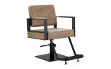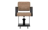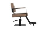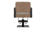 Wyposażenie fotela w mechanizm pełnego obrotu sprawia, że praca fryzjera staje się bardziej efektywna i wygodna. Solidna, płaska podstawa w kształcie kwadratu gwarantuje stabilność w trakcie użytkowania. Matowo wykończona, gładka powierzchnia nadaje elementowi elegancki wygląd i sprawia, że ten jest łatwy do utrzymania w czystości. Wygodne siedzisko z wypełnieniem z pianki zapewnia wysoki komfort użytkowania, nawet podczas wielogodzinnych zabiegów. Geometryczne, częściowo tapicerowane podłokietniki pozwalają na prawidłowe ułożenie barków klienta – sprawia to, że nie chowa głowy w ramionach ani się nie garbi – wyraźnie ułatwiając wykonywanie precyzyjnych zabiegów, w tym strzyżenia.