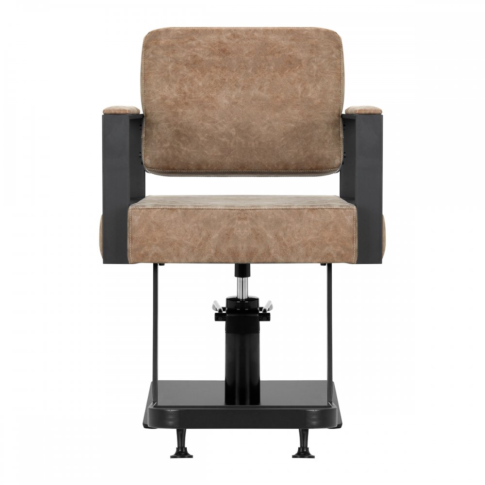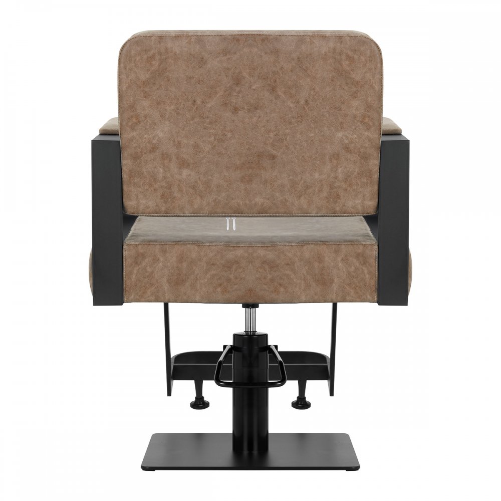 Regulacja wysokości możliwa jest dzięki zastosowaniu trwałego podnośnika hydraulicznego, który pozwala dostosować poziom siedziska w granicach 50-64 cm – nawet w momencie, gdy klient siedzi na fotelu. Gwarantuje to bardziej ergonomiczną pracę, zapewniając możliwość dopasowania poziomu siedziska do wzrostu zarówno klienta, jak i fryzjera. Oparcie obite jest skórą syntetyczną i pozwala na zajęcie dogodnej pozycji, zapewniając doskonałe wsparcie dla pleców, co ma znaczenie zwłaszcza w przypadku wielogodzinnych zabiegów. Dużym plusem tego modelu jest pozostawiony pomiędzy oparciem a siedziskiem otwór. Ułatwia on zachowanie czystości w salonie, pozwalając w łatwy sposób wymieść włosy z każdego zakamarka fotela. W ten sposób można usprawnić przygotowanie stanowiska pracy pomiędzy klientami.