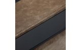 Wypełnienie z trwałej, odpornej na odkształcenia pianki oraz obicie wykonane z przyjemnej w dotyku skóry syntetycznej o specyficznej strukturze zapewniają trwałość mebla i jego komfortowe użytkowanie przez długi czas. Sprawiają również, że sprzęt jest odporny na wilgoć, wytrzymały oraz łatwy do czyszczenia. Pokrycie w odcieniach brązu wraz z ciekawymi wizualnymi elementami w odcieniach czerni nadają mu wyjątkowego charakteru. Sprzęt wyróżnia modernistyczny design, który sprawia, że fotel będzie doskonale prezentować się w wielu salonach urządzonych w nowoczesnym stylu.