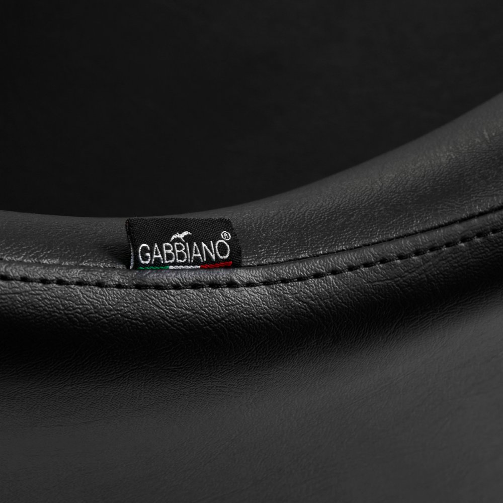 Wygodny, funkcjonalny mebel wypełniony jest odporną na odkształcenia, trwałą pianką, z kolei jego obicie wykonane zostało z przyjemnej w dotyku skóry syntetycznej. Zastosowane materiały zapewniają trwałość mebla oraz jego komfortowe użytkowanie przez długi czas i sprawiają, że sprzęt jest odporny na wilgoć, wytrzymały oraz łatwy do czyszczenia. Pokrycie w odcieniach czerni wraz z elementami w odcieniach złota nadają mu wyjątkowy charakter. Sprzęt wyróżnia minimalistyczny design, który sprawia, że fotel będzie doskonale prezentować się w wielu salonach.