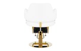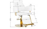 Elegancki fotel fryzjerski Gabbiano Linz NQ wyposażony jest w trwały podnośnik hydrauliczny. Wyraźnie usprawnia wykonywanie różnorodnych zabiegów a jednocześnie zapewnia wysoki komfort użytkowania. Klasyczna kolorystyka, prosty design oraz ozdobne polerowane elementy w odcieniach złota nadają mu gustowny wygląd.