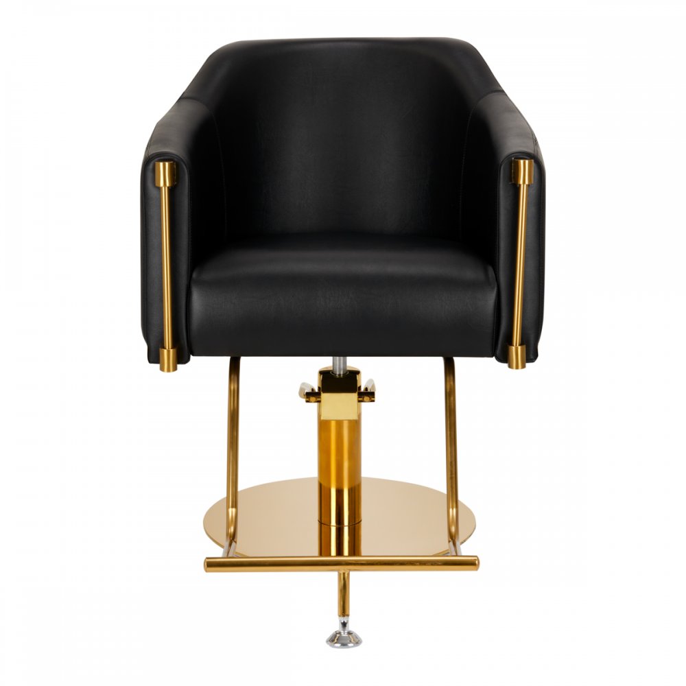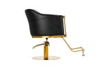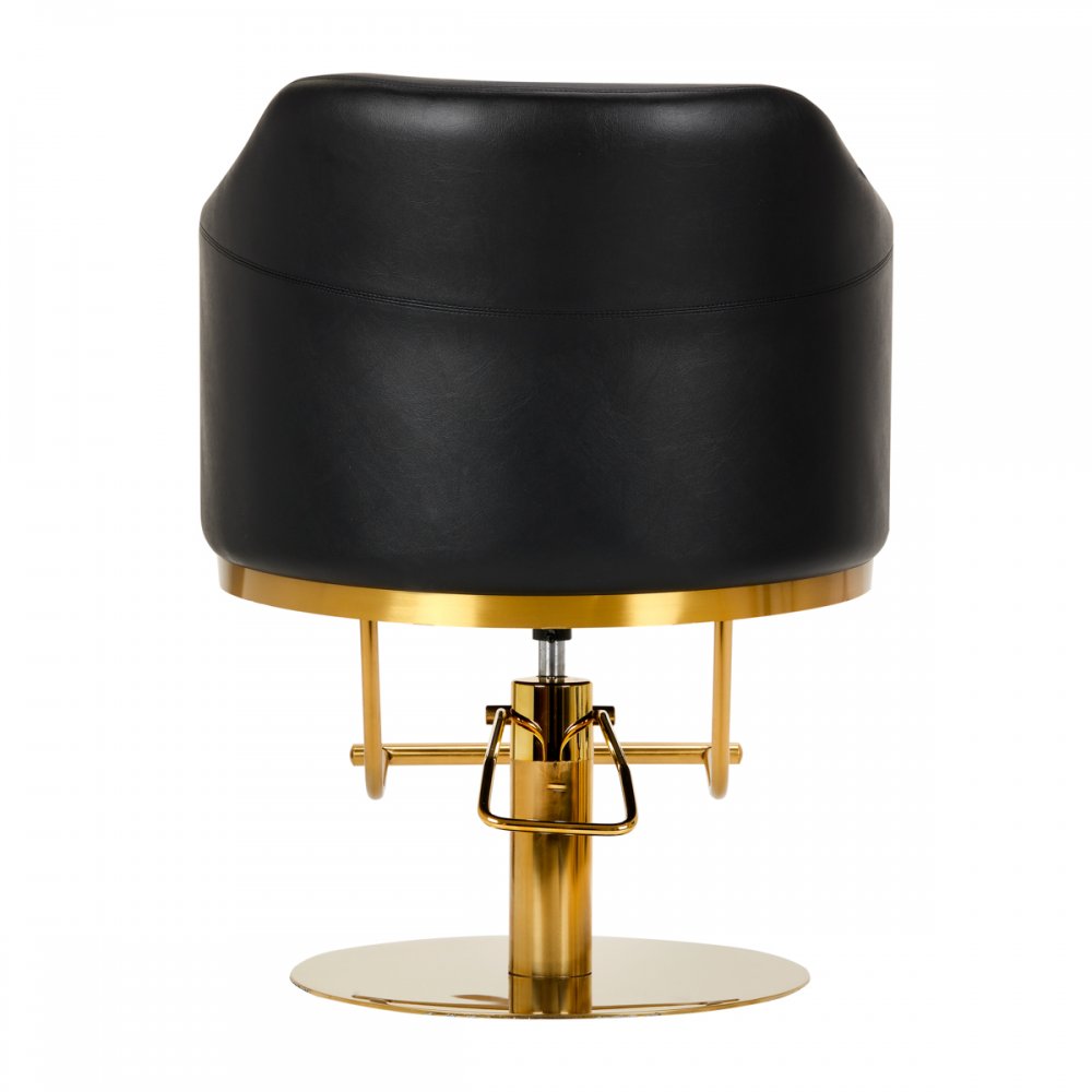 Fotel fryzjerski Gabbiano Burgos wyposażony w podnośnik hydrauliczny jest praktycznym meblem, który stanie się ozdobą salonu fryzjerskiego. Klasyczna kolorystyka, dedykowany podnóżek i ozdobne elementy w odcieniach złota nadają mu elegancki wygląd. Wysoka funkcjonalność zapewni komfort zarówno fryzjerom, jak i jego użytkownikom.