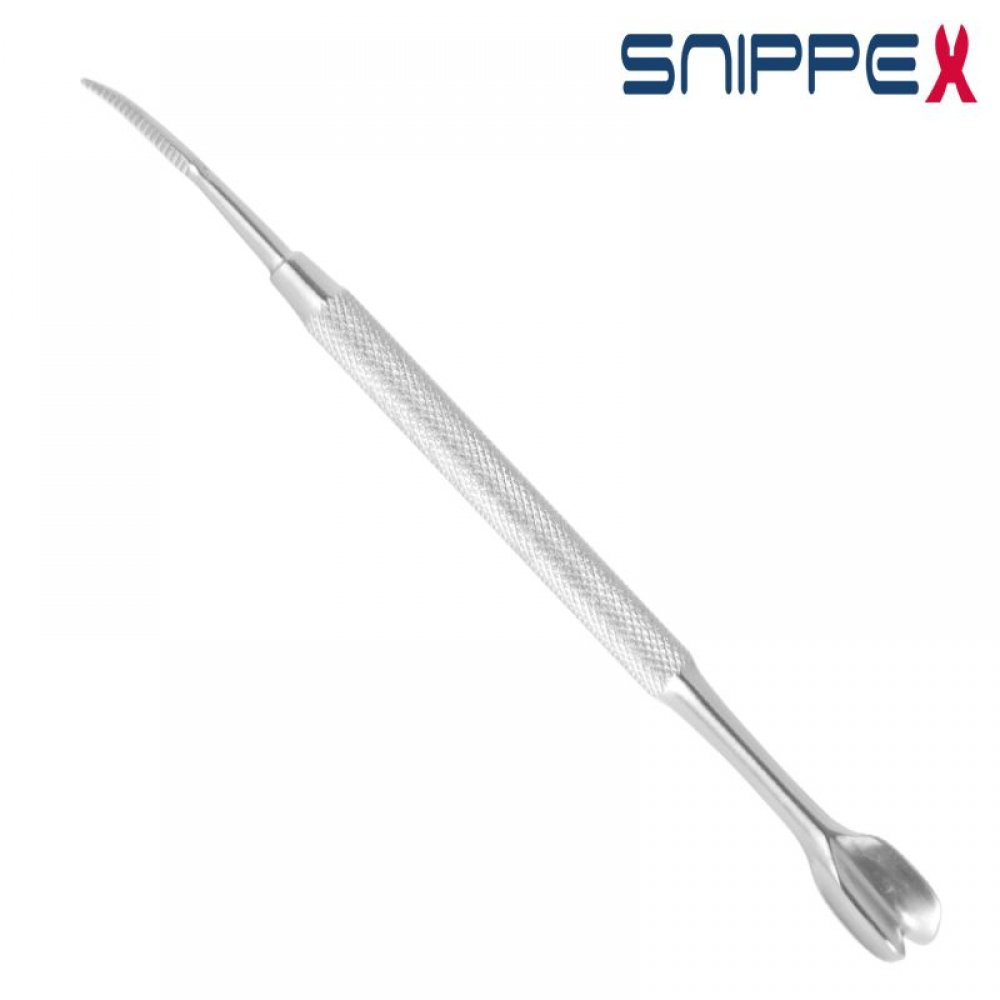 Dwustronne bardzo dobrze wyprofilowane do dłoni kopytko do manicure z pilniczek do wrastających paznokci ze stali nierdzewnej.