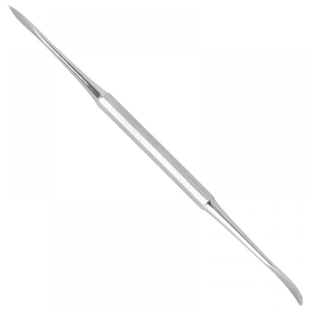 Dwustronne bardzo dobrze wyprofilowane do dłoni kopytko do manicure i pedicure ze stali nierdzewnej.