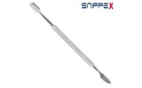 Dwustronne bardzo dobrze wyprofilowane do dłoni kopytko do manicure i pedicure ze stali nierdzewnej.