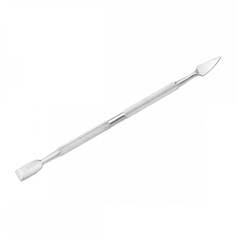 • Delikatnie zagięty grot dotrze do trudniej dostępnych miejsc, dzięki czemu ułatwi usuwanie naskórka i innych zanieczyszczeń z płytki paznokcia.