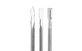 • Ścięty nożyk służy do wycinania skórek, zwłaszcza z boków płytki. Sposób wyprofilowania końcówki ułatwia precyzyjną pracę.