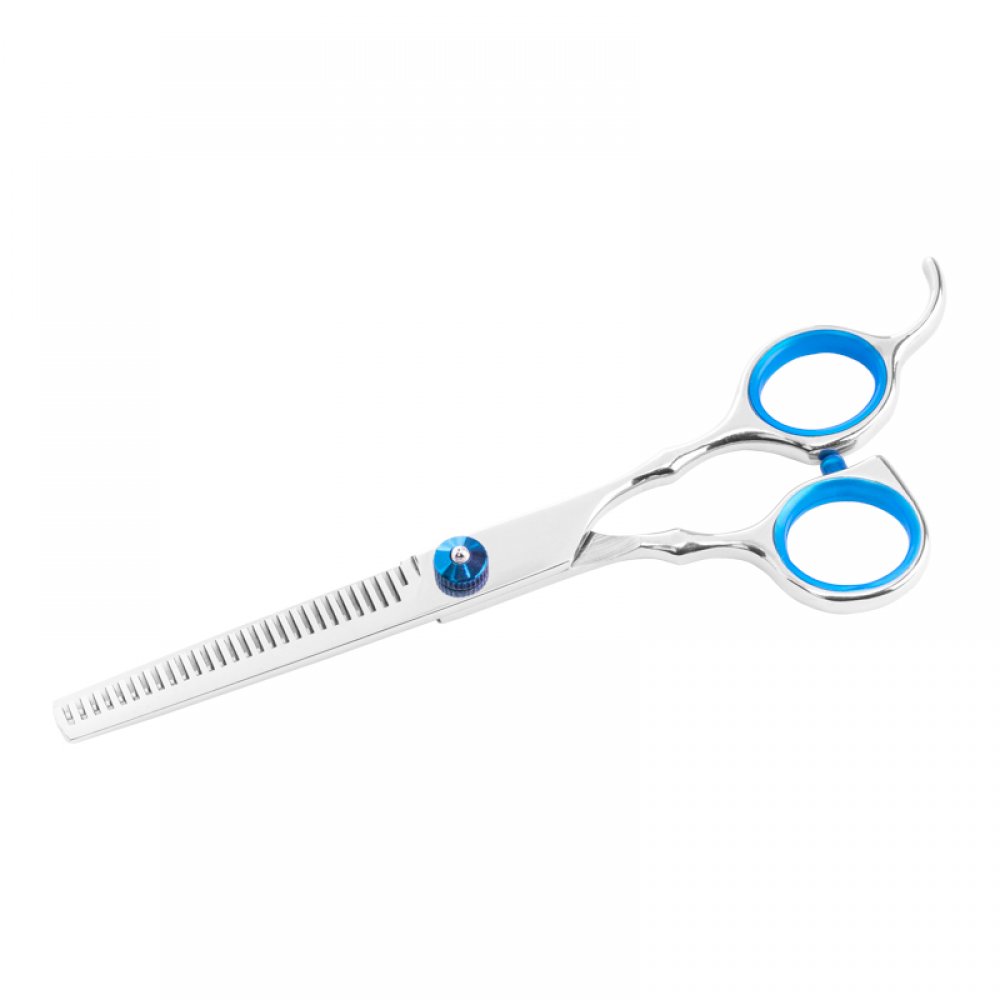 Srebrno - Niebieskie Degażówki Fryzjerskie 6"powinny znaleźć się w każdym salonie fryzjerskim.Wykonane są z najwyższej jakości stali. Produkt długo zachowuje doskonale właściwości, co sprawia, że cięcie jest precyzyjne i gładkie. Odbojnik pomiędzy oczkami znacznie podnosi komfort pracy.