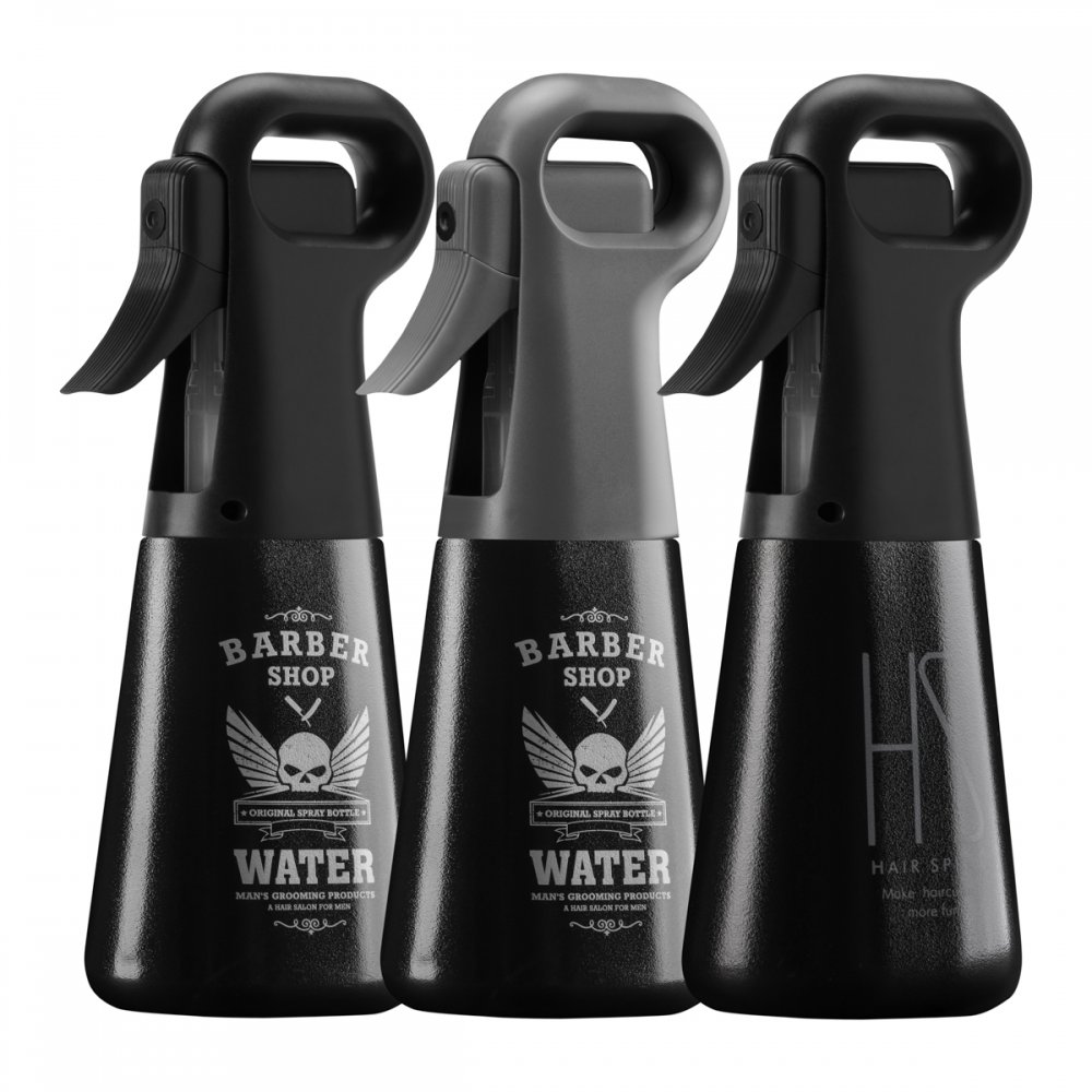 Profesjonalny spryskiwacz fryzjerski. Po naciśnięciu rączki wytwarza się podciśnienie w spryskiwaczu i następuje wypuszczenie wody. Innowacyjna dysza wytwarza mgiełkę, która wydostaje się ze spryskiwacza przez około 1-2 sekundy.