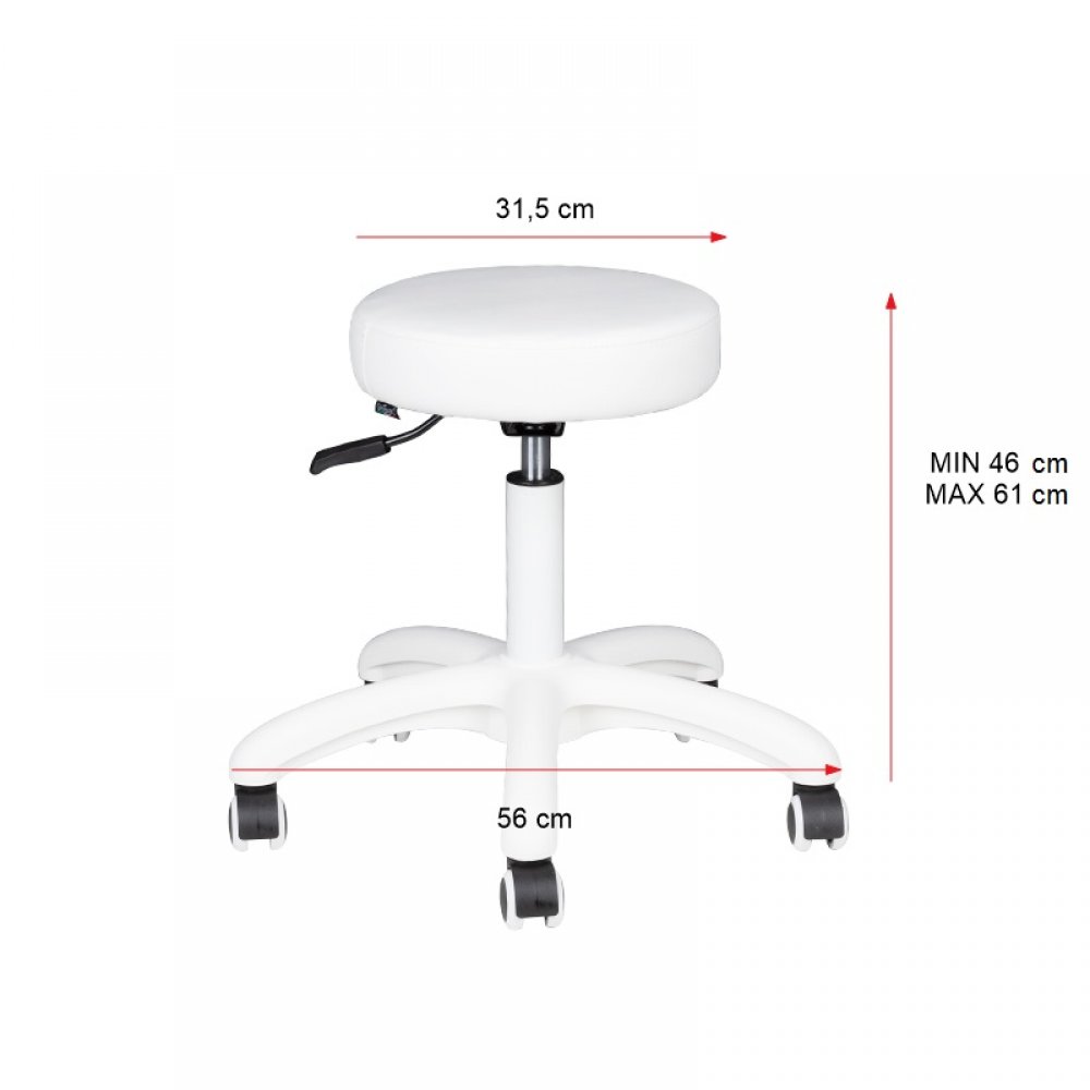 Wygodny taboret kosmetyczny, stabilny na pięcioramiennej podstawie, z gumowanymi kółkami . Niezbędny mebel w gabinecie kosmetycznym.
