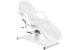 Fotel obrotowy z blokadą, podnoszony i opuszczany hydraulicznie z otworem w zagłówku, doskonale sprawdza się w kosmetyce, wizażu i masażu. Posiada wyjmowane podłokietniki i zaślepkę w zagłówku. Poszycie fotela łatwo zmywalne, wykonane z eko-skóry, spełniające rygorystyczne wymogi UE, estetyczne, niklowane elementy metalowe. Pod fotelem zamontowany jest pałąk na prześcieradło jednorazowe, serwety lub ręcznik. Fotel dostępny jest w kolorze białym.