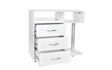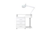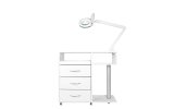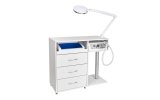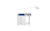 Solidny unit podologiczny Y-300 został stworzony, aby ułatwiać pracę osobie wykonującej zabiegi. Trzy pojemne szuflady pomieszczą wszelkie potrzebne akcesoria, narzędzia i produkty. Znaczącym atutem jest wysuwana półeczka, na której można umieścić niezbędne w pracy podologa urządzenia, takie jak sterylizator czy frezarka. Będzie również doskonałym miejscem na przybory czy preparaty, które warto mieć stale pod ręką. Mebel wyposażony jest w kółka, co usprawnia pracę i jego przestawianie. Pozwalają one łatwo transportować go między pomieszczeniami. Uchwyt TUBE pozwala na mocowanie lampy bezpośrednio do blatu w dowolnym jego miejscu. Pomocnik wykonany jest z trwałych materiałów, łatwy w czyszczeniu i będzie znacząco usprawniał przeprowadzanie specjalistycznych usług.